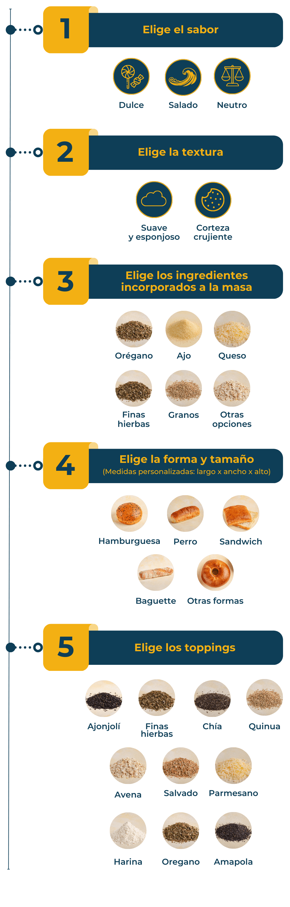 Puedes personalizar cualquier tipo de pan, desde bollos hasta barras o panes para hamburguesa.